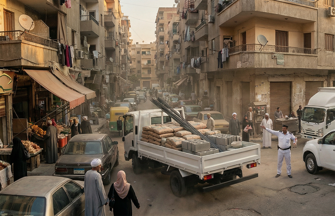 تفرض معظم المدن المصرية حظرًا كليًا أو جزئيًا على سير الشاحنات الثقيلة خلال ساعات النهار، خاصة في أوقات الذروة. هذا الأمر يضغط على عمليات نقل مواد البناء ويقلص نافذة الوقت المتاحة للنقل، وغالبًا ما يدفع الشركات للعمل ليلاً فقط، مما يرفع تكاليف التشغيل.